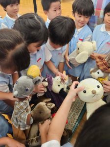 子どもたちは物語に集中し、人形の動きで笑ったり、