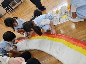 今年度のテーマは、「にじいろキラキラうんどうかい」です。