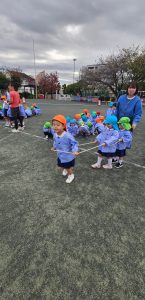 ある日はいちご組さんも参加して、お庭でストップ&ゴーゲーム☆