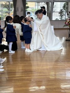 七五三は、「おめでとう」と「ありがとう」を言う日なのですよ、と神父様。