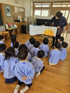 何やら先生が絵本を読んでいます。何のお話だと思いますか?