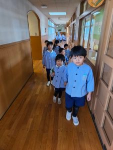 今年度は、年長・年中・年少の子どもたちで3人グループをつくり、
