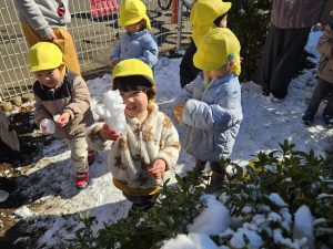 「おうちでも昨日雪だるま作ったよ!」「つららが垂れてたよ」と、朝から大はしゃぎでした。